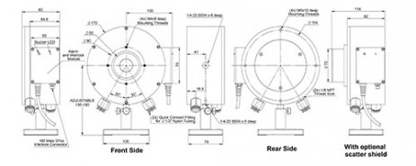 16K-W-BB-55是一款水冷式熱功率/能量激光測量傳感器,孔徑為55mm,適用于非常高的功率。它可以測量100W到16000W的功率。它有一個偏轉錐和環形吸收器,可承受10kW/cm2的高功率密度。它的光譜范圍從0.8-2μm到10.6μm。16K-W-BB-55傳感器在輸出電纜附近的傳感器上安裝了一個模塊,該模塊帶有過熱LED、響亮的音頻信號和M8 3連接器互鎖。該傳感器配有一根標準的5米電纜,用于連接儀表或PC接口。