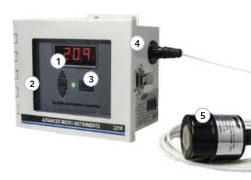 允許監控遠離控制單元的位置。標準配備 12 英尺 (3.6 m) 電纜,但客戶可將其延長至 300 英尺 (91.4 m)。