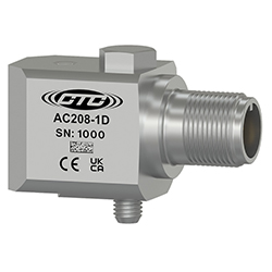 高溫IEPE加速計,最高溫度325°F(162°C),頂部出口2針連接器,100 mV/g,±10%