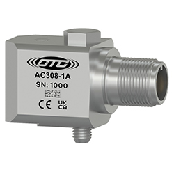 高溫IEPE加速度計,最高溫度325°F(162°C),M8X1.25固定螺栓,側出2針連接器,100 MV/G,±10%