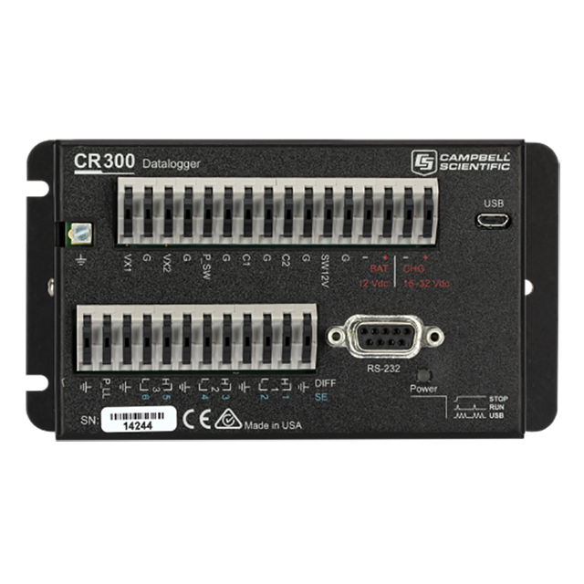 CR300 是一款低功率數據記錄器,設計用于測量傳感器、分析數據以及存儲數據和程序。電池供電時鐘可確保準確計時。所有 Campbell Scientific 數據記錄器通用的機載類 BASIC 編程語言支持數據處理和分析程序。