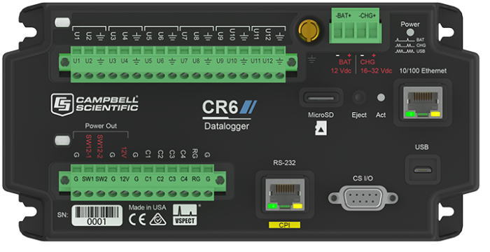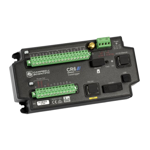 CR6 測量和控制數(shù)據(jù)記錄器是數(shù)據(jù)采集系統(tǒng)的強(qiáng)大核心組件。CR6 數(shù)據(jù)記錄器提供快速通信、低功耗要求、內(nèi)置 USB、緊湊的尺寸以及高模擬輸入精度和分辨率。它使用通用 (U) 端子允許連接到幾乎任何傳感器——模擬、數(shù)字或智能。這種多用途數(shù)據(jù)記錄器還能夠進(jìn)行靜態(tài)振弦測量。