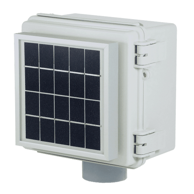 帶可充電鋰離子電池的太陽能 SDI-12 數據記錄器,安裝在抗紫外線天氣的聚碳酸酯外殼中。