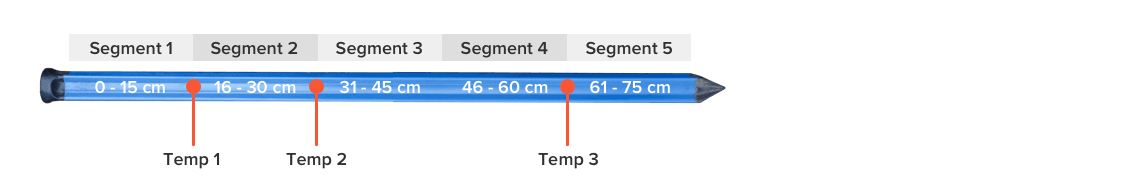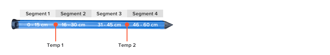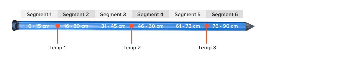 光滑、輕便的設計使用導桿和滑錘工具快速安裝,對土壤的破壞最小。該傳感器設計用于垂直安裝,在多個土層上進行測量,每個測量區(段)提供15厘米范圍(約6英寸)內的平均體積土壤水分含量。