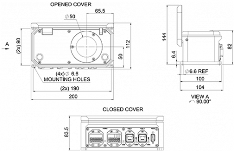 尺寸 | 200 Lx123 Wx144 H(mm)-開放式,200 L x 100 W x 84 H(毫米)-封閉式連接器:AIDA、DB9 |