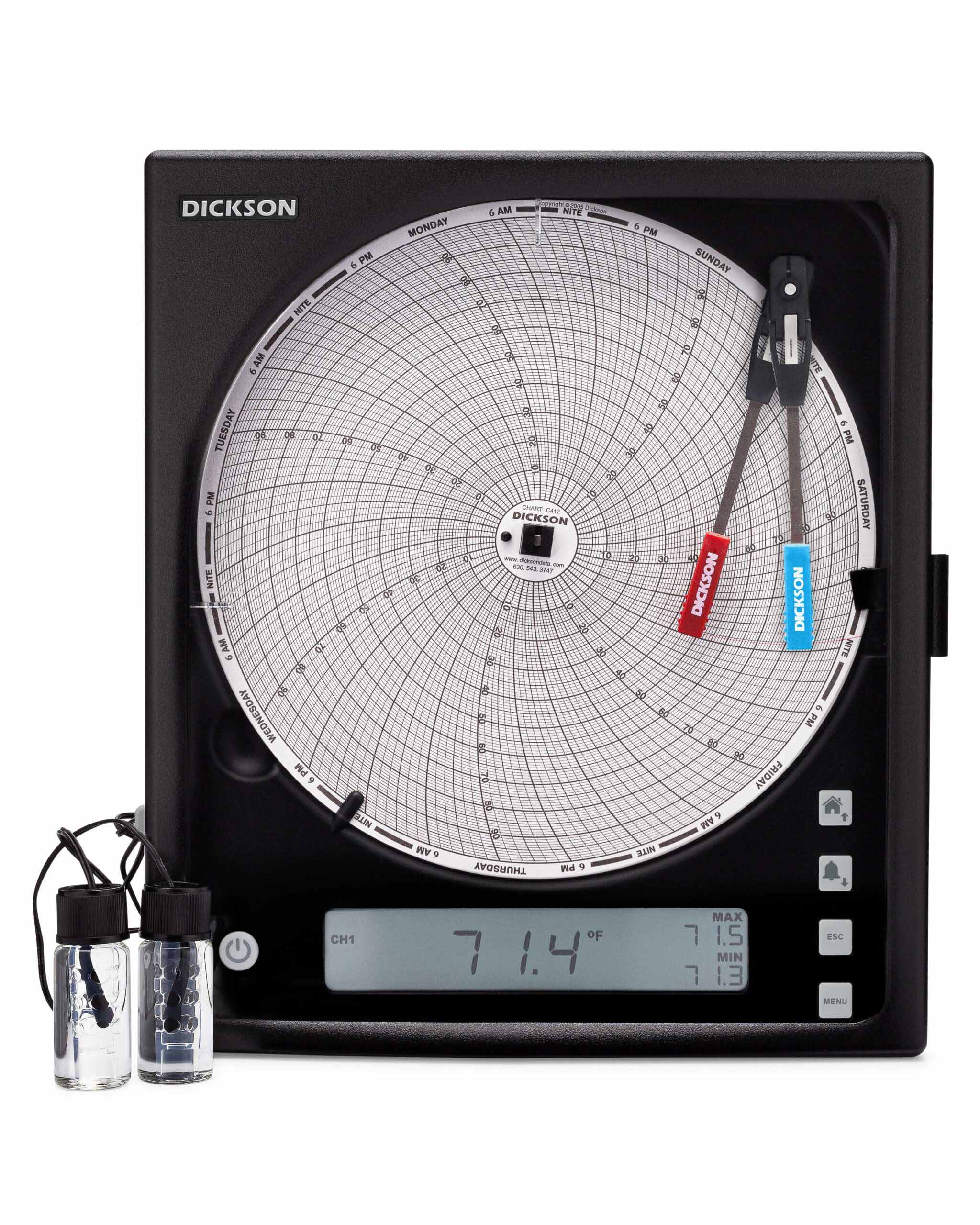 美國(guó)DICKSON KT8-21 8英寸(203 毫米)圖表記錄儀提供所有圖表記錄儀中較大的分辨率。現(xiàn)在具有可更換傳感器,校準(zhǔn)您的圖表記錄儀比以往任何時(shí)候都更容易。所有圖表記錄儀均配有 8 英寸大圖表和用戶可選擇的記錄時(shí)間范圍(1 天、1 周)和范圍。
