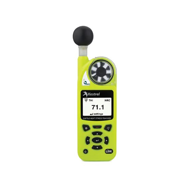 Kestrel 5400 牛熱應(yīng)激追蹤器可在圍欄或院子位置提供微氣候測量和監(jiān)測。包含內(nèi)置的地球溫度傳感器和完整的牛專用計算。測量 THI 和 HLI,并根據(jù)易于輸入的牛群和豬欄參數(shù)跟蹤 AHLU。使用隨附的葉片安裝附件進(jìn)行抽查或安裝到位,以跟蹤 AHLU 數(shù)月。LiNK 功能允許從您的 iOS 或 Android 移動設(shè)備遠(yuǎn)程訪問當(dāng)前和記錄的數(shù)據(jù)。在附近安裝配備移動數(shù)據(jù)的平板電腦,即使您不在現(xiàn)場也能發(fā)送移動警報。Kestrel 5400 牛熱應(yīng)激追蹤器由 Kestrel 設(shè)計,并得到了一些上受尊敬的牛熱應(yīng)激專家的意見,旨在幫助您測量和管理牛群的熱應(yīng)激,確保您提高利潤。