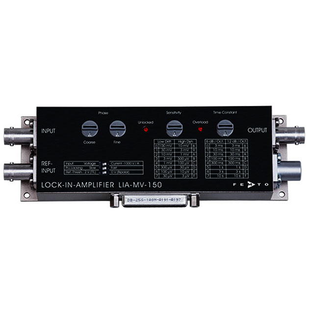 兩種編程方式放大器設(shè)置 - 例如相位、增益、時(shí)間常數(shù) - 由放大器模塊上的開(kāi)關(guān)直接控制或使用標(biāo)準(zhǔn)數(shù)字 I/O 計(jì)算機(jī)板從外部控制。可變工作頻率由外部參考信號(hào)確定,該外部參考信號(hào)可以是例如斬波輪的同步信號(hào)或激光器的調(diào)制信號(hào)。電流輸入非常適合放大來(lái)自高阻抗源(如光電二極管或 PMT)的信號(hào),而電壓輸入可用于測(cè)量來(lái)自低阻抗源(如熱電阻或線圈)的信號(hào)。