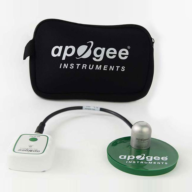 PP-100 封裝包括一個 SP-110-SS自供電硅電池日射強度計、microCache 藍牙微型記錄器、一個 AA-090 氯丁橡膠保護套、一個額外的 2545 microCache 電池和一個 AM-020 Apogee PVC 傳感器平臺。配對后,這兩個設備是監測光合有效輻射的強大工具,具有非常高的精度,可實現良好的植物生長。SQ-100X 傳感器是進行精確 PPFD 測量的值得信賴的行業標準。