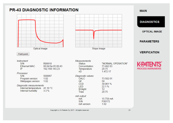 PR-43-PC 折光儀有一個(gè)帶有儀器主頁(yè)的內(nèi)置網(wǎng)絡(luò)服務(wù)器。主頁(yè)允許通過(guò)以太網(wǎng)連接配置、監(jiān)控、驗(yàn)證和診斷折光儀。