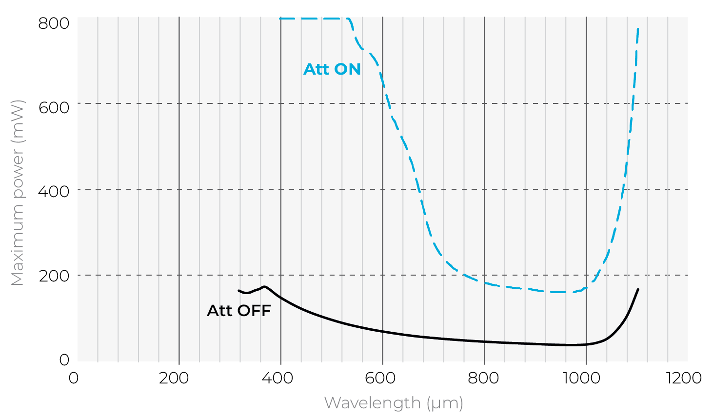 1. 532 nm,附有衰減器。查看其他波長(zhǎng)的最大功率曲線。 2. 查看用戶手冊(cè),了解使用衰減器校準(zhǔn)的不確定性。 |