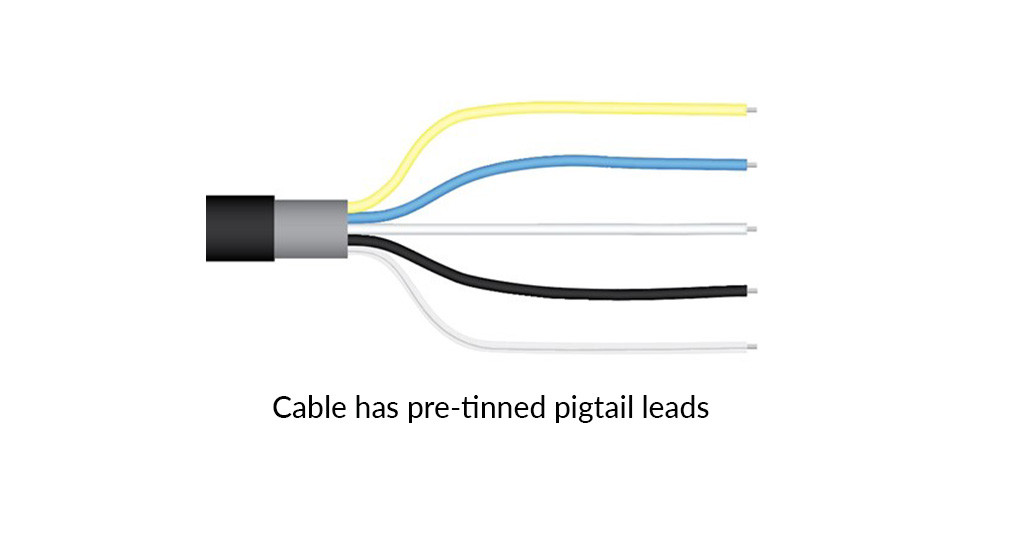 電纜 | 5 m 屏蔽雙絞線;TPR 夾克(高耐水性、高紫外線穩定性、寒冷條件下的柔韌性);尾纖引線;不銹鋼 (316),M8 接頭 |