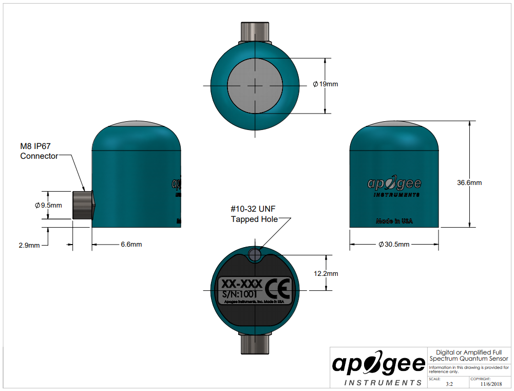 輸出(靈敏度) | 0.004 mA / μmol mˉ2 sˉ1 |