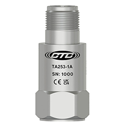 雙輸出傳感器,溫度和加速度,M8X1.25固定螺栓,側出3針連接器,100 MV/G,10 MV/°C,±10%