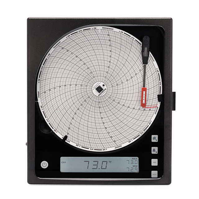 美國DICKSON TH8-10 8英寸(203 毫米)圖表記錄儀提供所有圖表記錄儀中較大的分辨率。現在具有可更換傳感器,校準您的圖表記錄儀比以往任何時候都更容易。所有圖表記錄儀均配有 8 英寸大圖表和用戶可選擇的記錄時間范圍(1 天、1 周)和范圍。