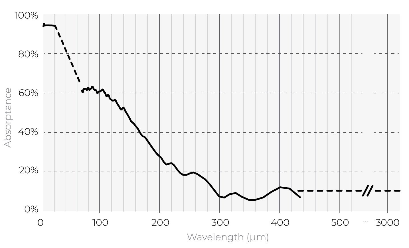 光譜平寬帶涂層可吸收非常寬的波長范圍。我們的 BL 吸收器具有非常高的吸收率,確保了高靈敏度。