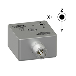 低頻和雙輸出,壓電速度和溫度三軸傳感器,側出6針連接器,500 MV/IN/SEC,10 MV/°C,±5%