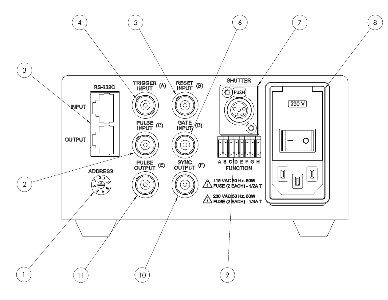 觸發輸入 (4) | 允許脈沖打開/脈沖關閉快門操作。 |