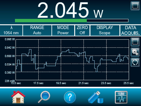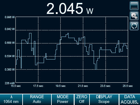測量模式:使用此菜單確定將顯示的測量類型:平均功率、單脈沖能量、脈沖至脈沖能量等。