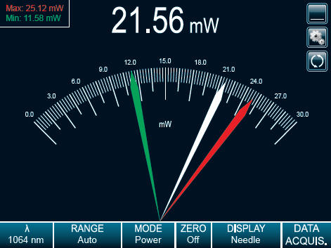 與模擬指針完全一樣,但速度更快!調整激光器時,此模式特別有用。屏幕頂部也會顯示實時值。