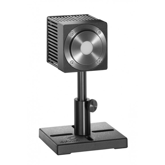 The 50A-PF-DIF-18 is a thermal power/energy laser measurement sensor for high peak power pulsed lasers with a diffuser. It has a 17.5mm aperture and can measure from 140mW to 50W and from 60mJ to 200J. It has a damage threshold of up to 4J/cm2 for ns pulses and covers the spectral range from 0.24 to 2.2μm. The sensor comes with a standard 1.5 meter cable for connecting to a meter or PC interface.