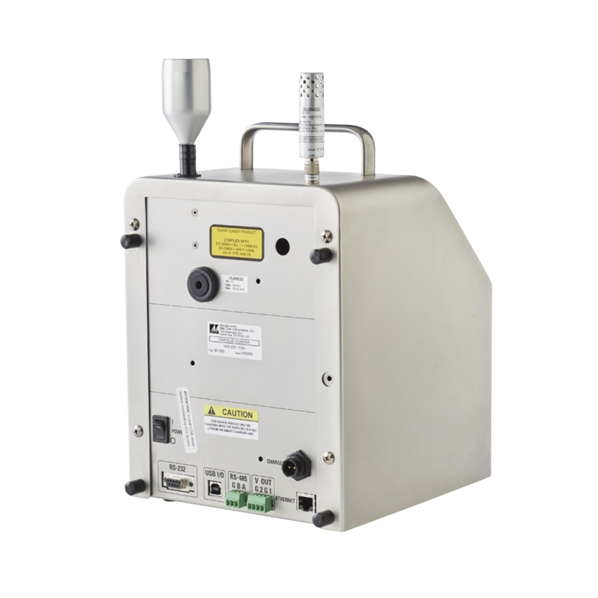 Sample history events may be viewed or printed and downloaded to a computer using Met One’s ParticleView or Comet software, or simple ASCII terminal commands. Real-time monitoring is available with an optional software upgrade to ParticleView RT. The unit easily integrates into MODBUS multi-drop networks and facility software. Connectivity is built-in for both digital (Ethernet, USB, RS-232, RS-485) and analog output (0-5 VDC). The BT-620 also includes a memory stick port.
