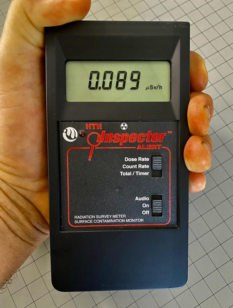 Sensor: Halogen-quenched Geiger-Mueller tube. Effective diameter 1.75″ (45 mm). Mica window density 1.5-2.0 mg/cm2