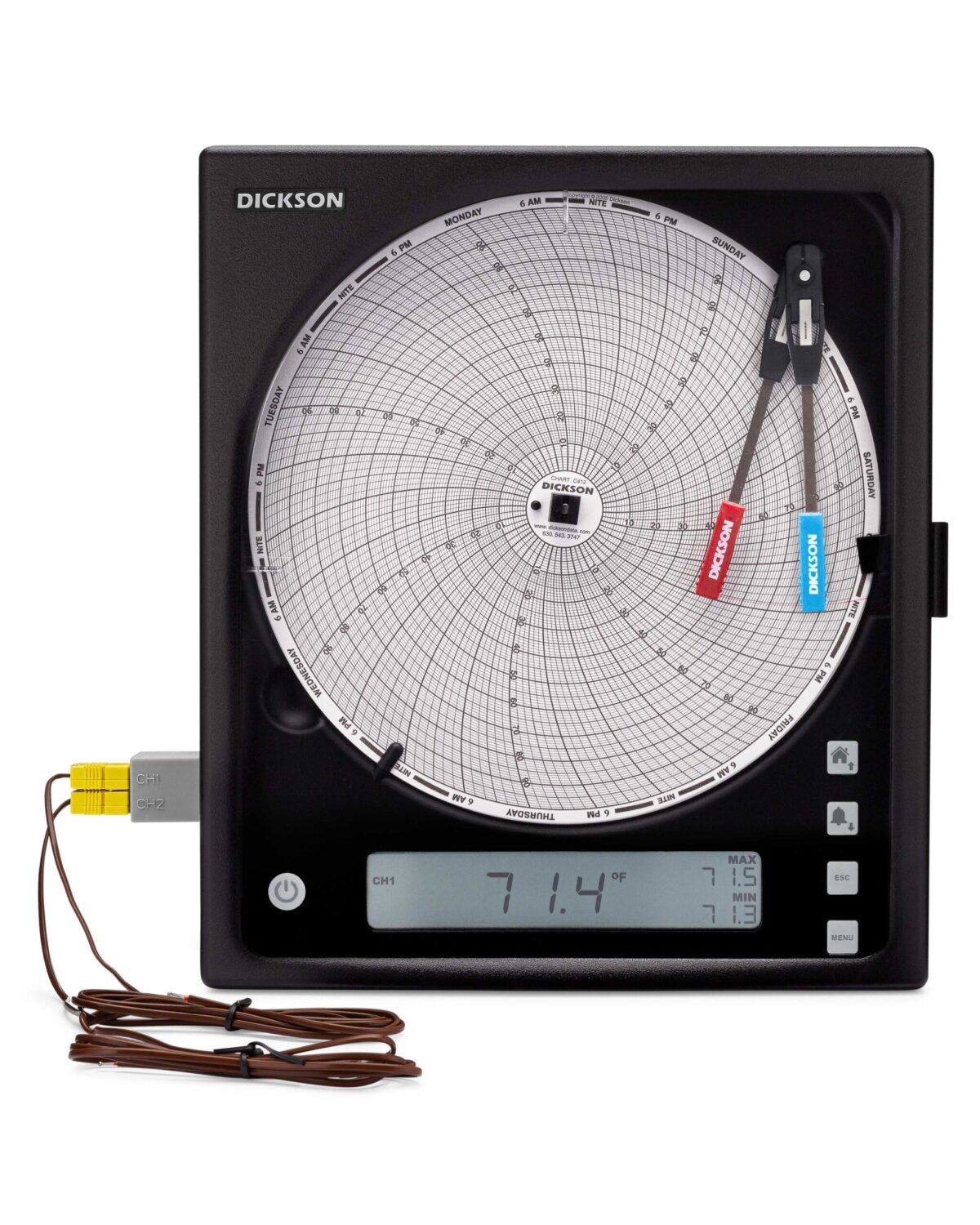 8″ (203mm) Chart Recorders offer the largest resolution out of any chart recorders. Now featuring Replaceable Sensors?, calibrating your chart recorder is easier than ever. All chart recorders feature a large 8″ chart and user-selectable recording timeframes (1-day, 1-week) and ranges.