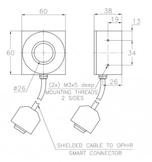 The L30C-LP2-26-SH is a compact thermal power/energy laser measurement sensor for freestanding use or mounted to host system. It has a 26mm aperture and can measure from 300mW to 10W stand alone and to 100W when heat sinked. It can measure energy from 30mJ to 2000J. The sensor is able to measure high power lasers of up to 4kW by measuring the energy of 0.5 - 4s exposure to the laser. The high damage threshold LP2 absorber covers the spectral range from 0.25 to 2.2μm. The sensor comes with a standard 1.5 meter cable for connecting to a meter or PC interface.