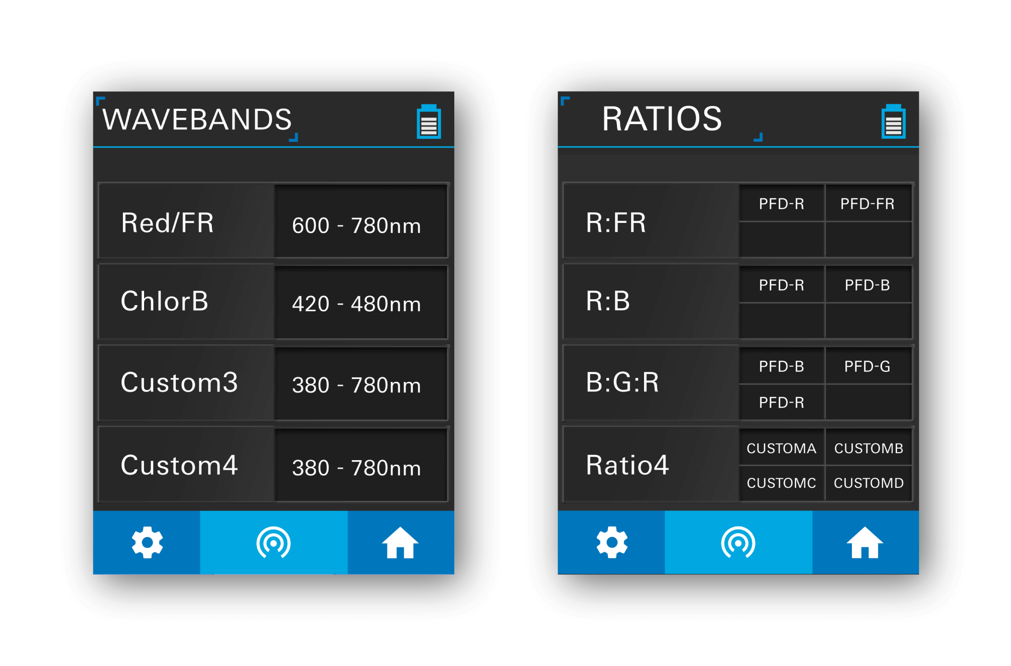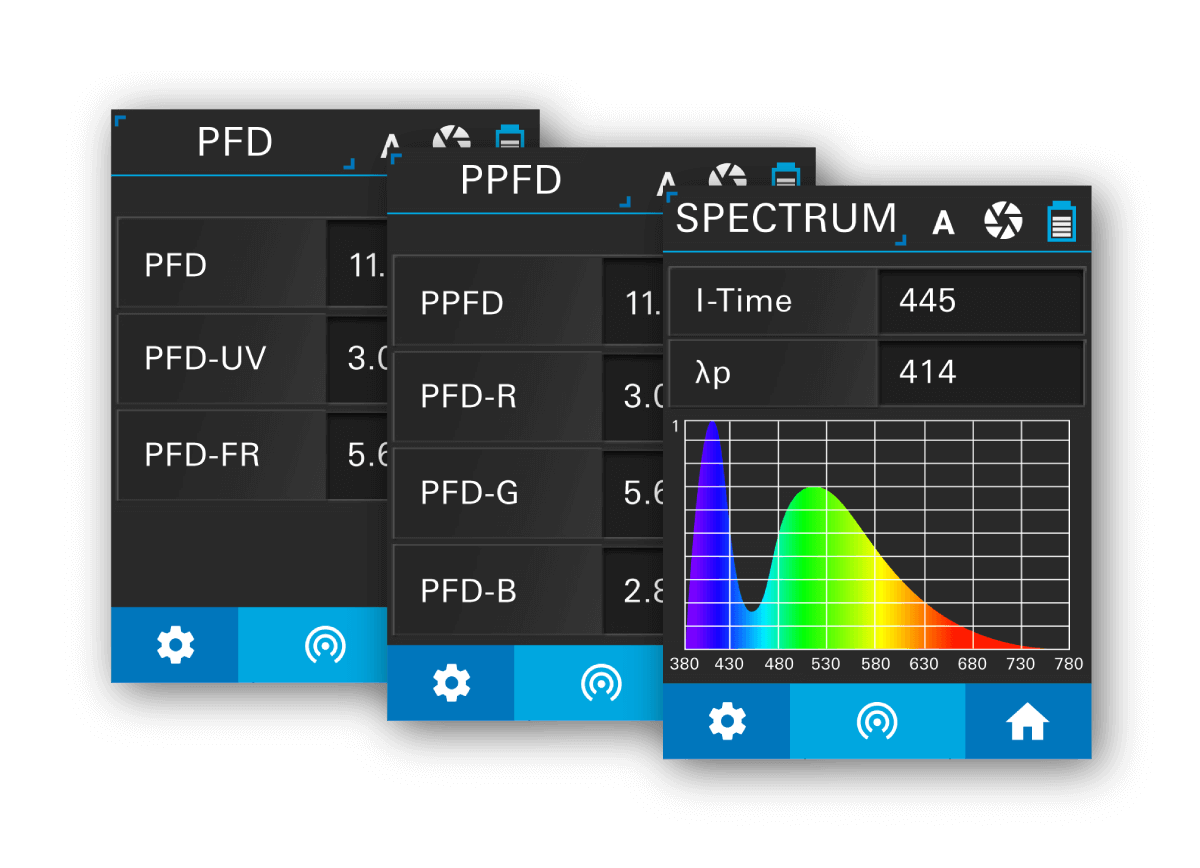 Measuring Modes | Measuring Modes: PPFD, PFD, Spectrum (chart), Logging, and Grid |