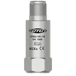 Intrinsically Safe IEC Certified (IECEx) Loop Power Sensor, 4-20 mA Output Proportional to Vibration in Acceleration, Top Exit 2 Pin Connector