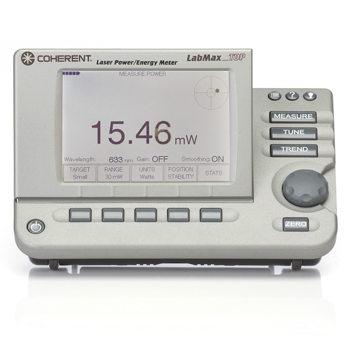Laser power and energy meter, graphing, tuning, statistics, data logging, USB and RS232 PC interfaces, analog output, external trigger input, 10000 pps pulse repetition rate.LabMax-TOP is directly compatible with most Coherent thermal, pyroelectric and semiconductor sensors and displays beam position for quick and accurate setup.