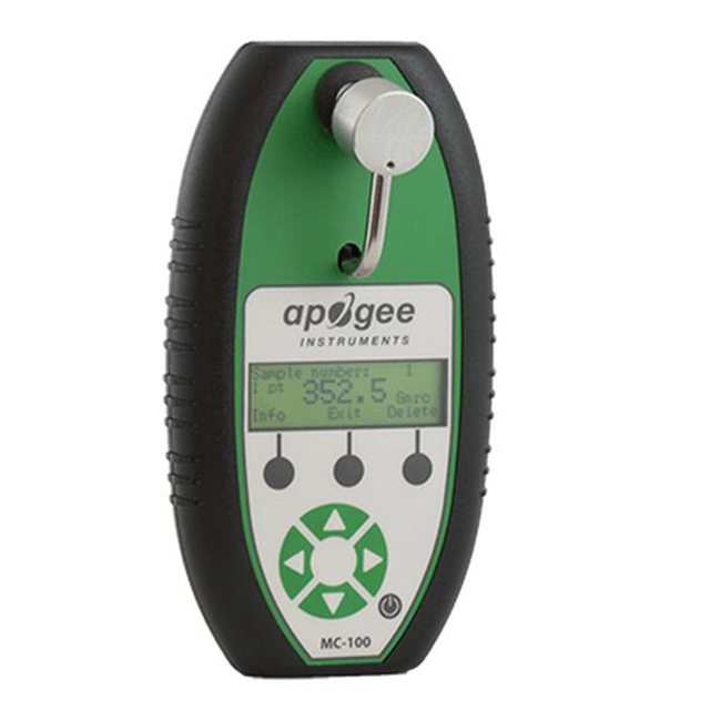 MC-100 can directly measure and display chlorophyll concentration in intact leaf samples without damaging plant materials. This instrument has been calibrated to measure chlorophyll concentration in units of μ Mol chlorophyll/m2. For reference and comparison purposes, the instrument also outputs relevant units (CCI or SPAD).