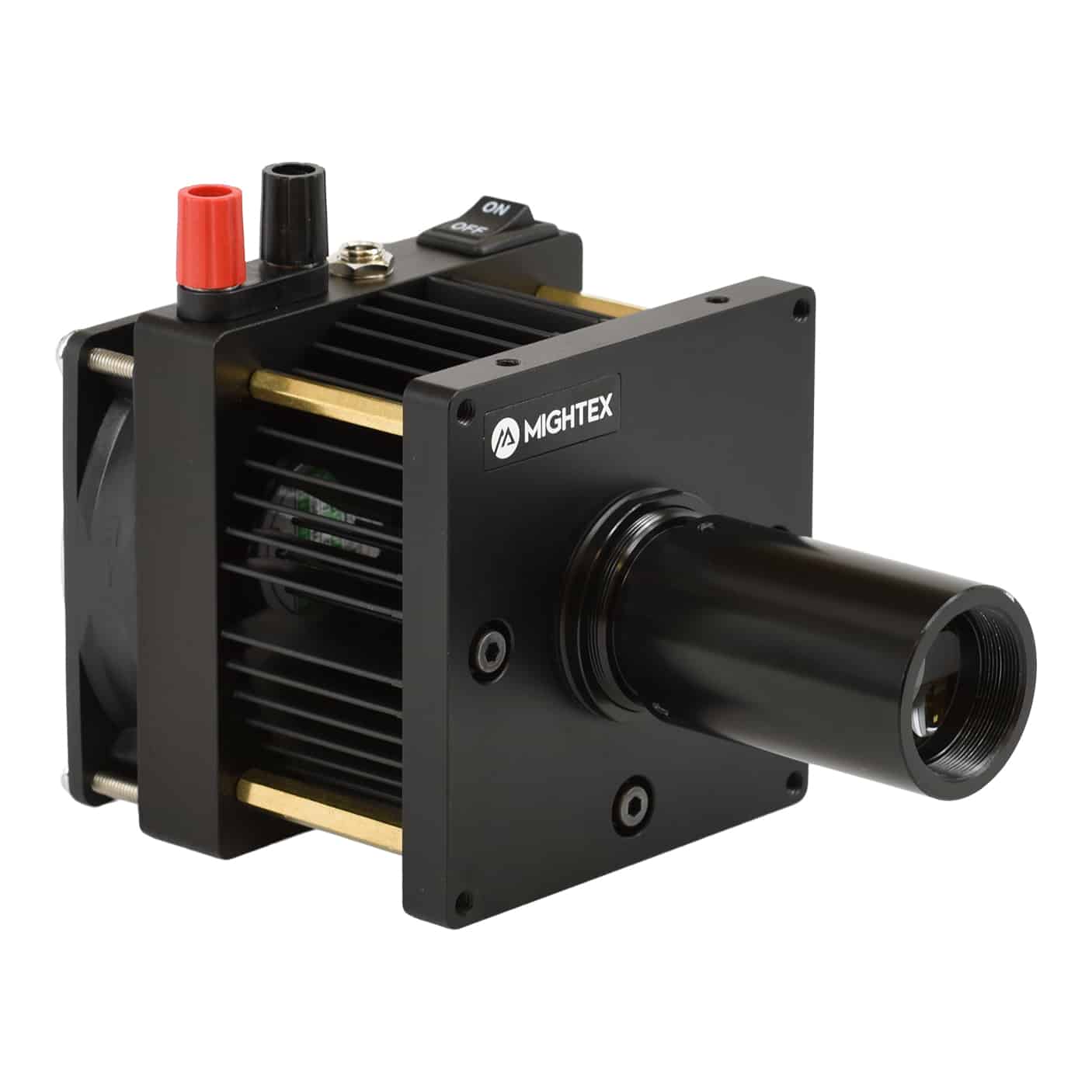 Mightex’s precision LED spotlight consists of a state-of-the-art high-power LED emitter and a proprietary high-NA multi-element aspherical optical system. The result is a high-power, uniform illumination spot with a highly-delineated edge.