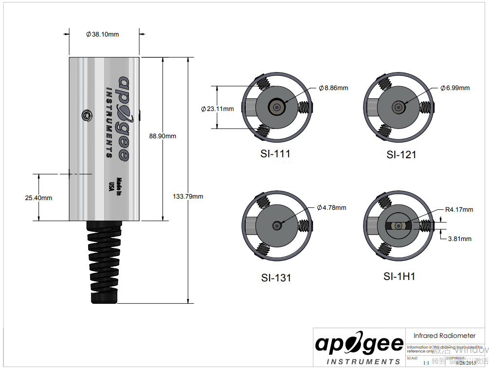The SI-411-SS has an SDI-12 digital output and high-quality cable terminating in pre-tinned pigtail leads for easy connection to dataloggers and controllers. The sensor has a 22° half-angle field of view and a response time of 0.1 seconds. The solar shield design has been updated for better mounting (see product pictures for more information). Typical applications include plant canopy temperature measurement for use in plant water status estimation, road surface temperature measurement of determination of icing conditions, and terrestrial surface (soil, vegetation, water, snow) temperature measurement in energy balance studies. Sensor includes IP68 marine-grade stainless-steel cable connector 30 cm from head to simplify sensor removal and replacement for maintenance and recalibration. The SI-411-SS is designed to be mounted with an Apogee AM-250 commercial-grade mounting bracket.