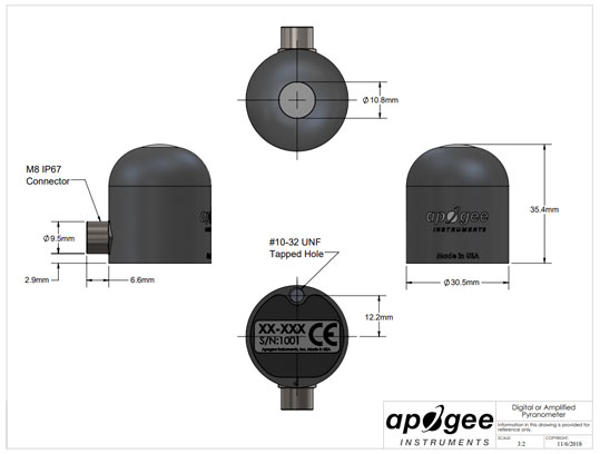 Calibration Factor | 125 W mˉ2 per mA (reciprocal of sensitivity) with an offset of 4 mA |