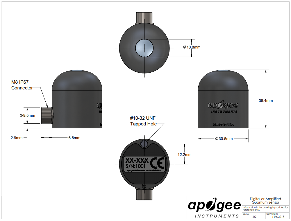 Non-linearity | Less than 1 % (up to 2500 μmol mˉ2 sˉ 1) |