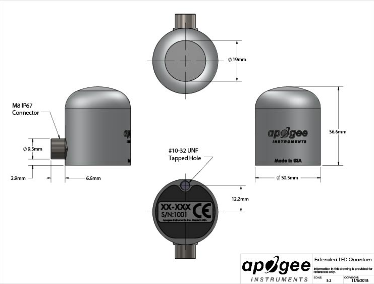 Calibration Factor | 250 μmol mˉ2 sˉ1 per mA |