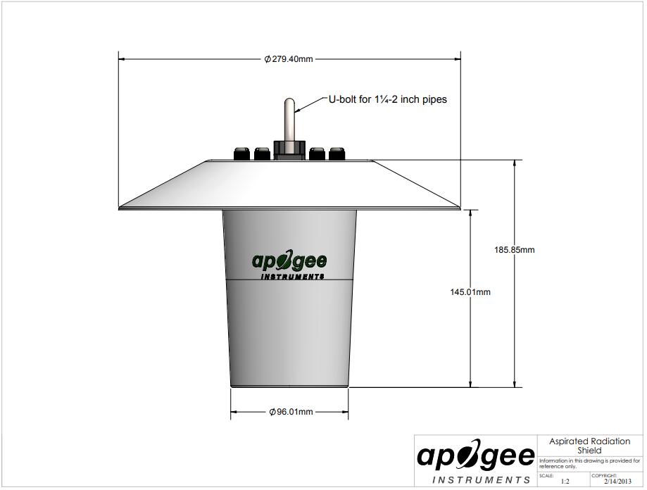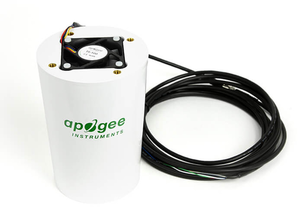 The TS-100 is the only shielding model for the apogee 12 volt fan suction radiation shield. Its unique aerodynamic shape and rugged low power consumption fan make it a research grade fan suction shield that can be used in batteries or solar power plants. The shield provides excellent sensor protection and uses a sensor port adapter plug to accommodate various combinations of thermistors, PRTs, and humidity probes. Typical applications include air temperature and humidity measurements in weather networks, usually for weather forecasting, and solar energy sites. Fan suction shields are also important in accurately measuring air temperature and humidity gradients above the surface and in monitoring climate change.